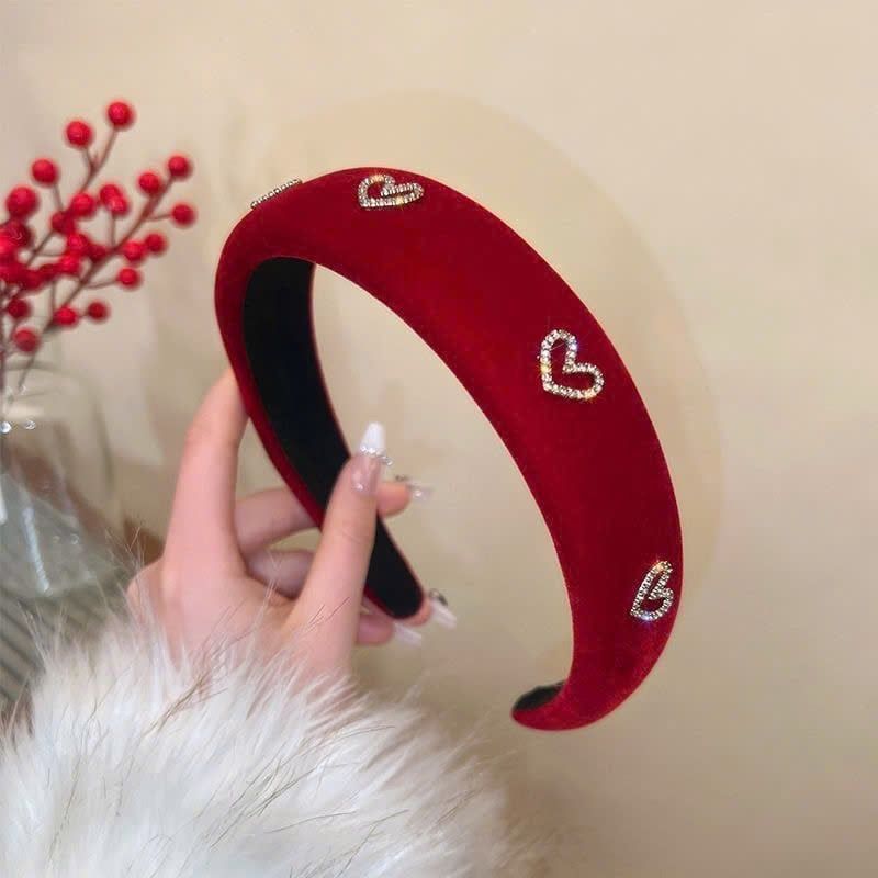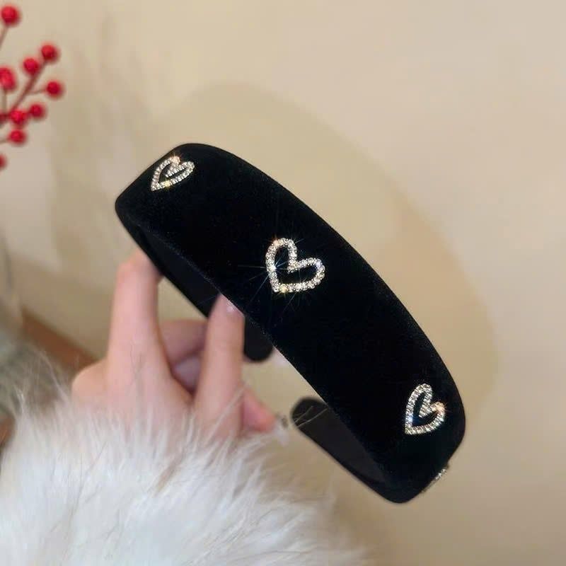 Bờm tóc nhung đính đá trái tim - H-BOM174