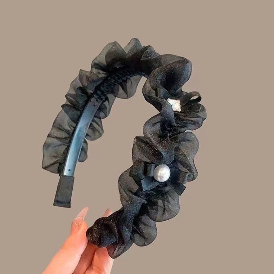 Bờm tóc vải ren xếp ly đính đá, ngọc trai - H-BOM56