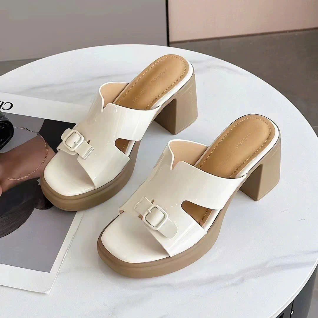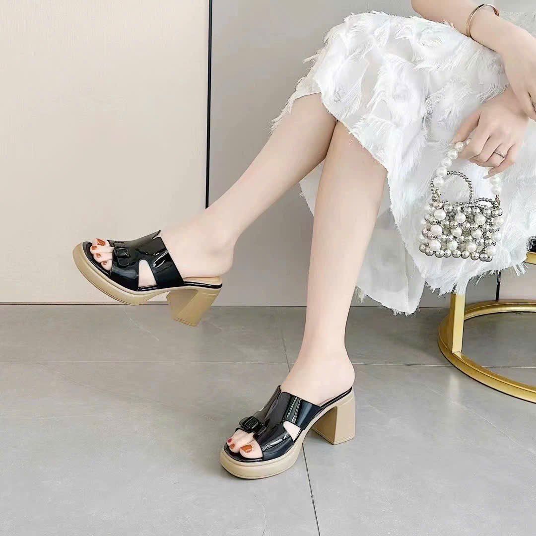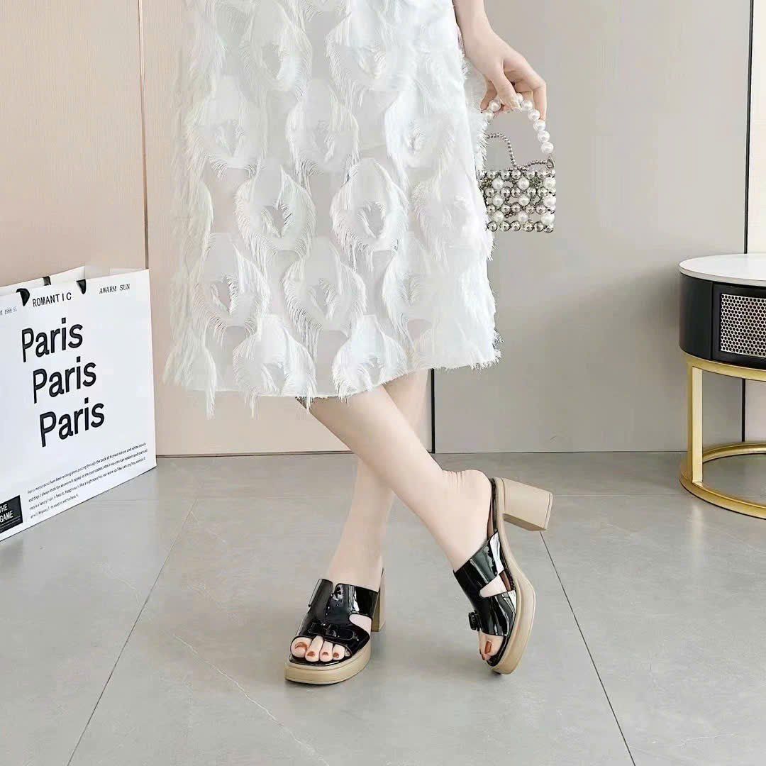 Dép Nữ Gót Vuông 7 Phân Đế Đúc Da Bóng Cao Cấp 53118-8