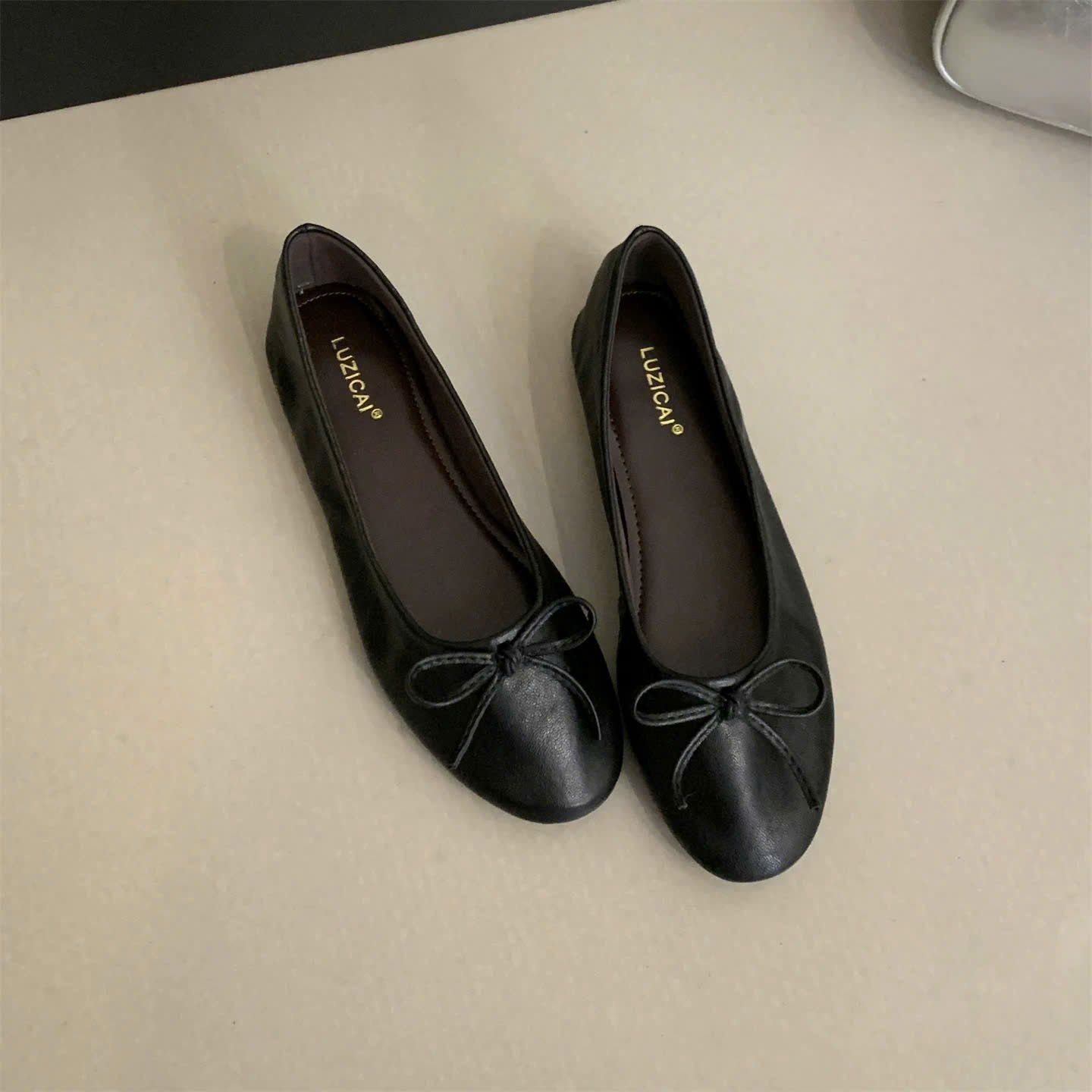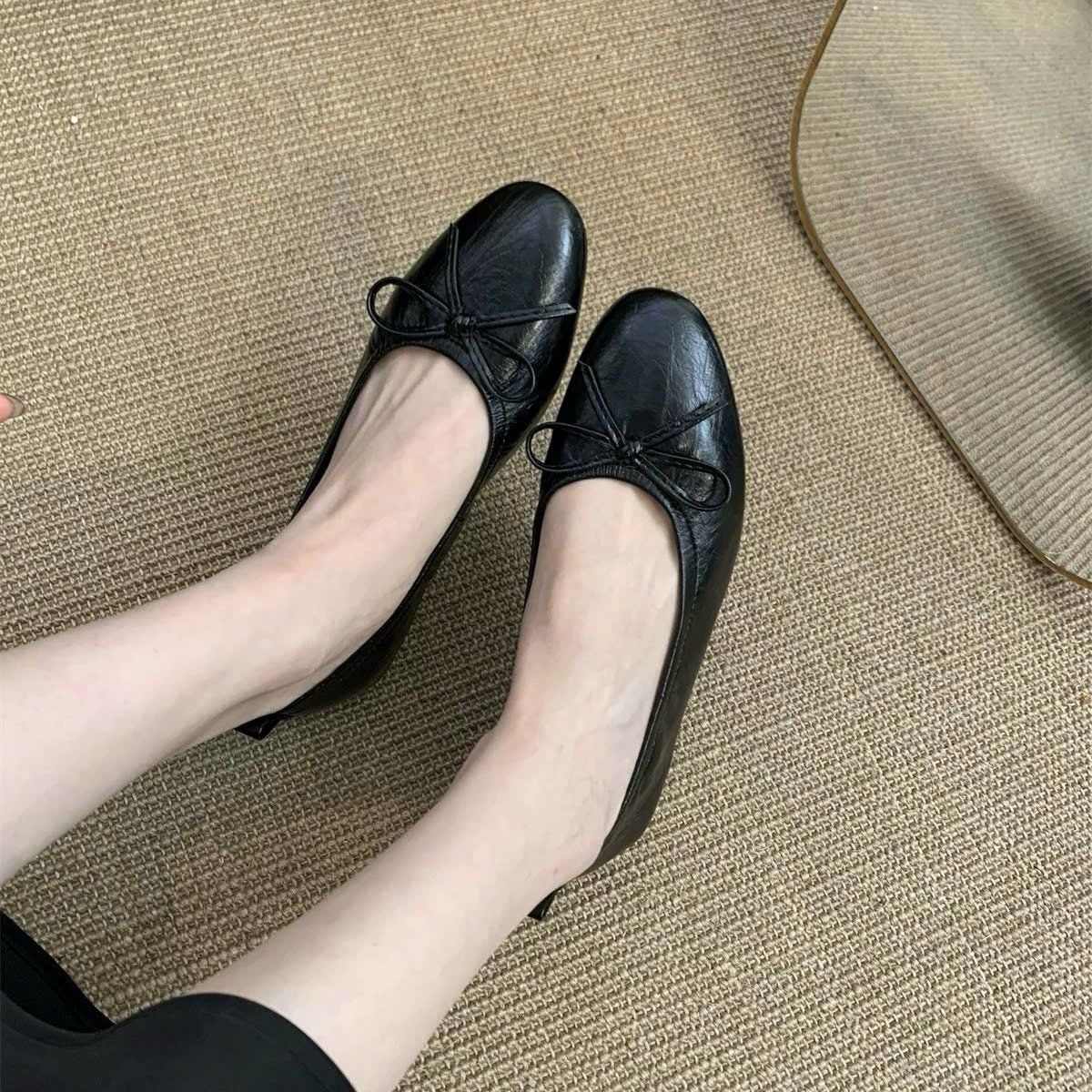 {Form Chuẩn} Giày Búp Bê Bệt Phối Nơ Da Lì Cao Cấp VN1989
