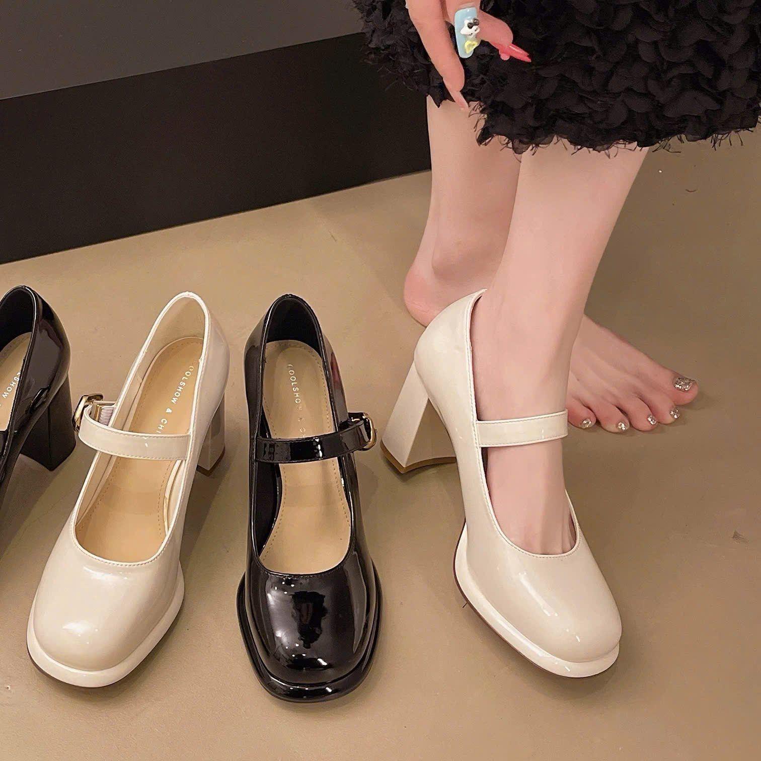 Giày Mary Jane Cao Gót 7 Phân Da Bóng Cao Cấp 09-922