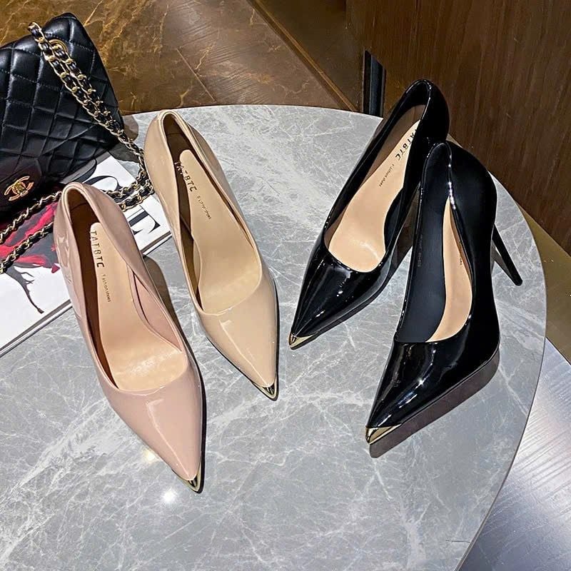 Giày Cao Gót 10 Phân Da Bóng Bọc Mũi Cao Cấp 539-18