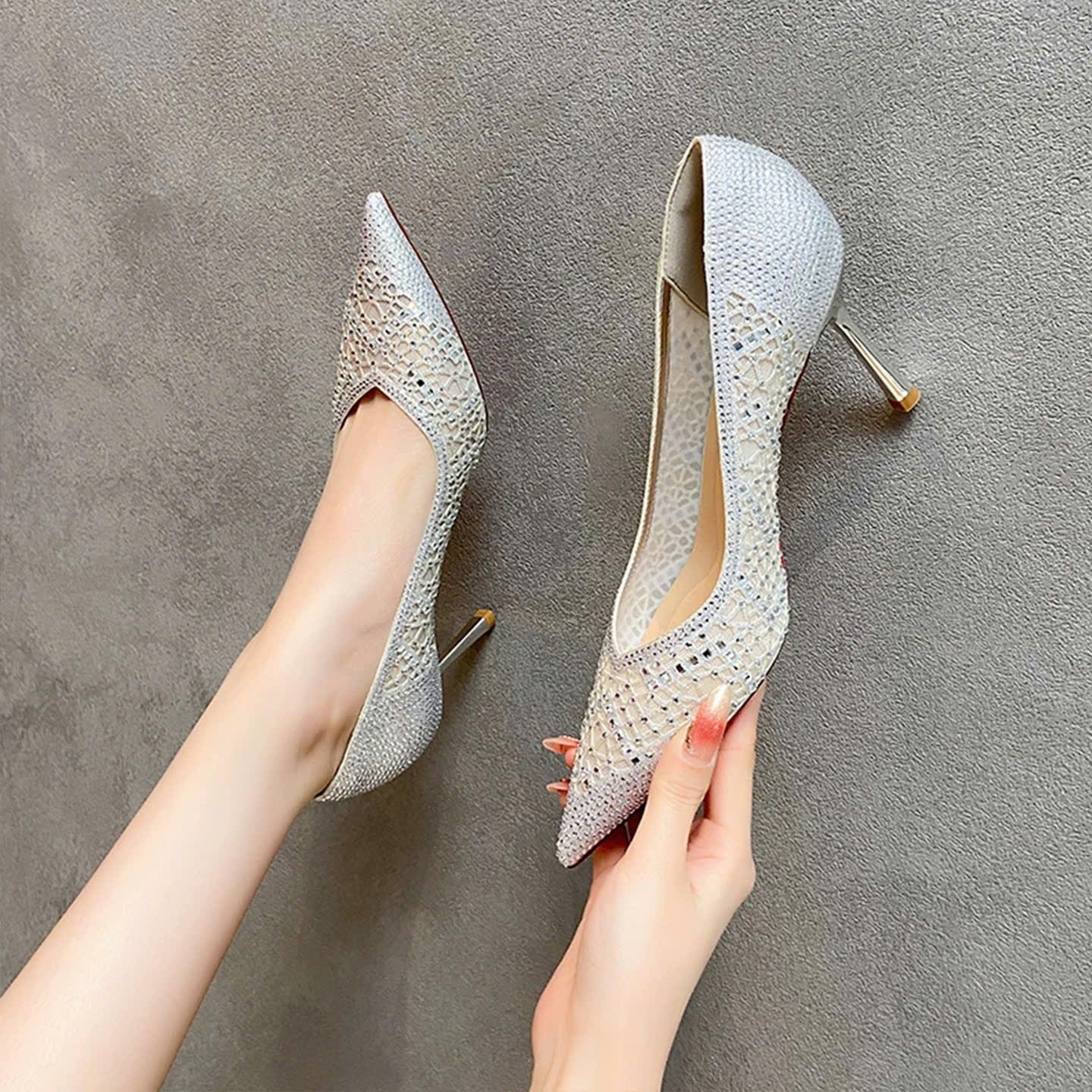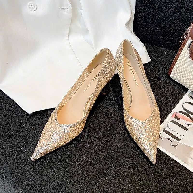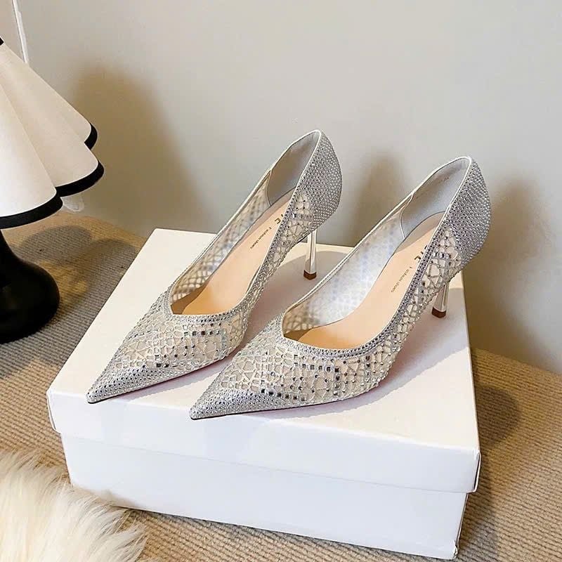 Giày Cao Gót 7,5 Phân Phối Lưới Đính Đá 528-181