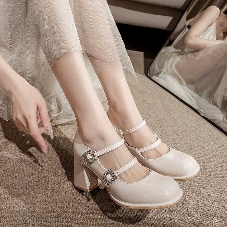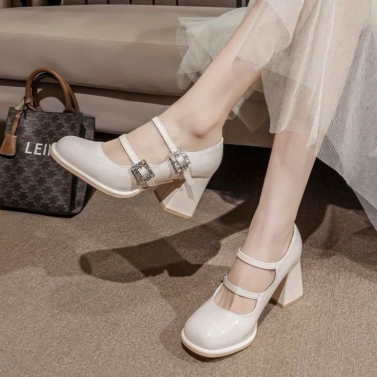 Giày Mary Jane Cao Gót 7 Phân Da Bóng Cao Cấp 636-10