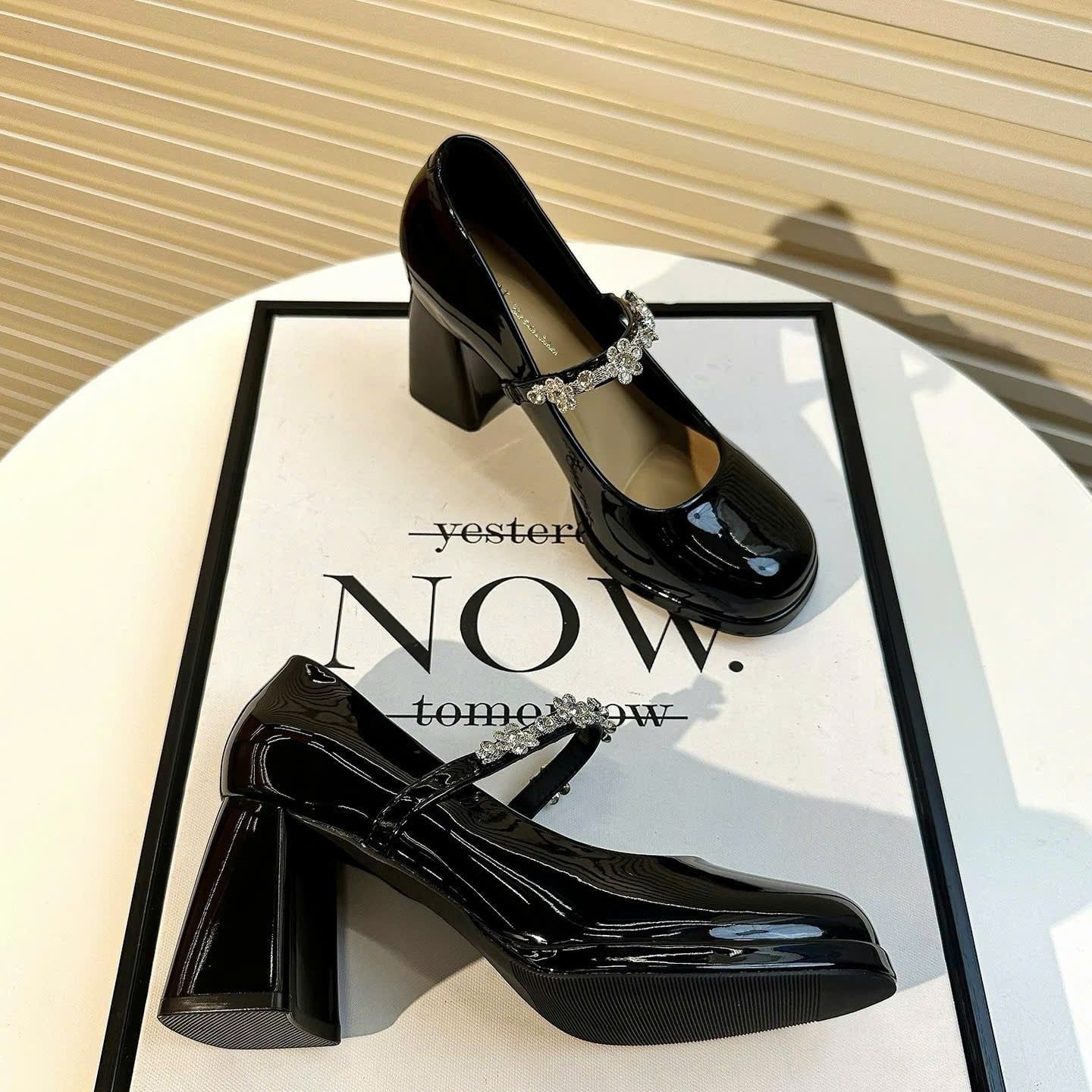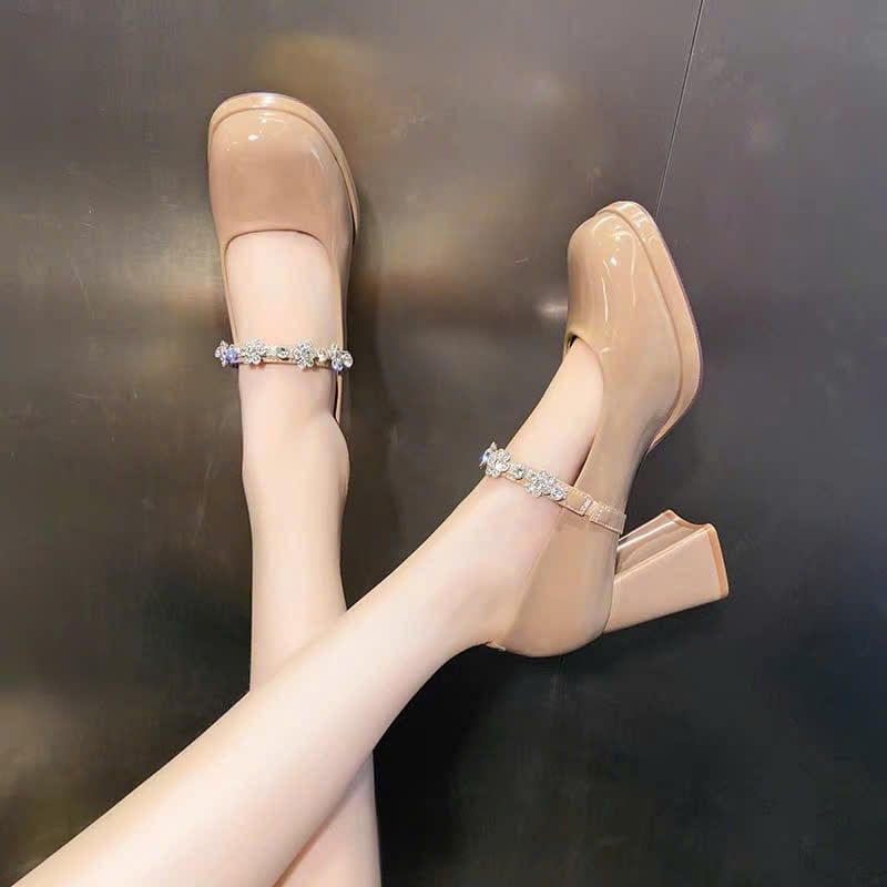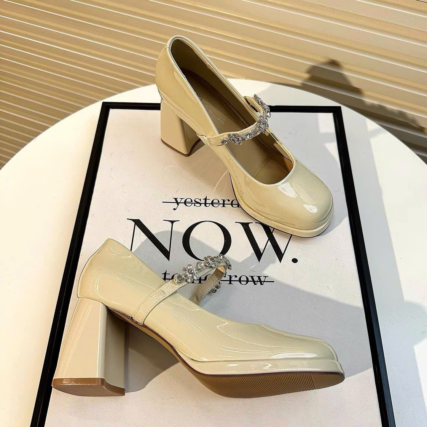 Giày Cao Gót 7 Phân Da Bóng Đính Đá Cao Cấp 8385-3