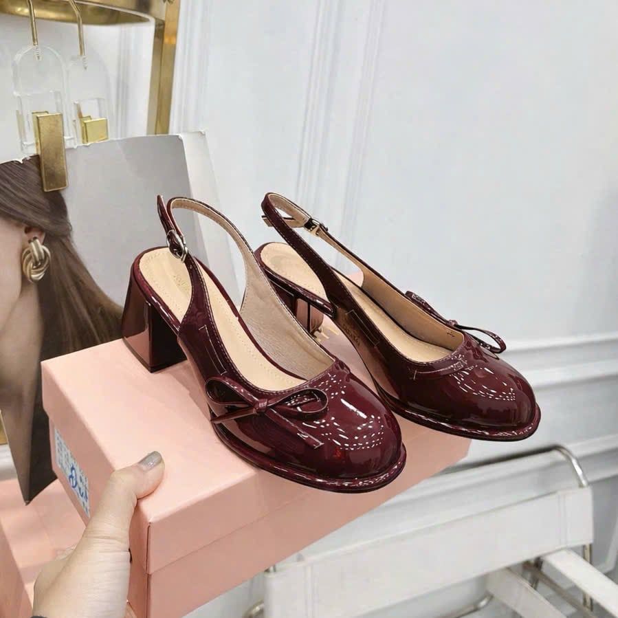{Form Chuẩn} Giày Cao Gót 7 Phân Phối Nơ Slingback Da Bóng V101