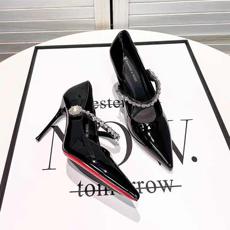 Giày Cao Gót 8 Phân Da Bóng Đính Đá Cao Cấp 95851