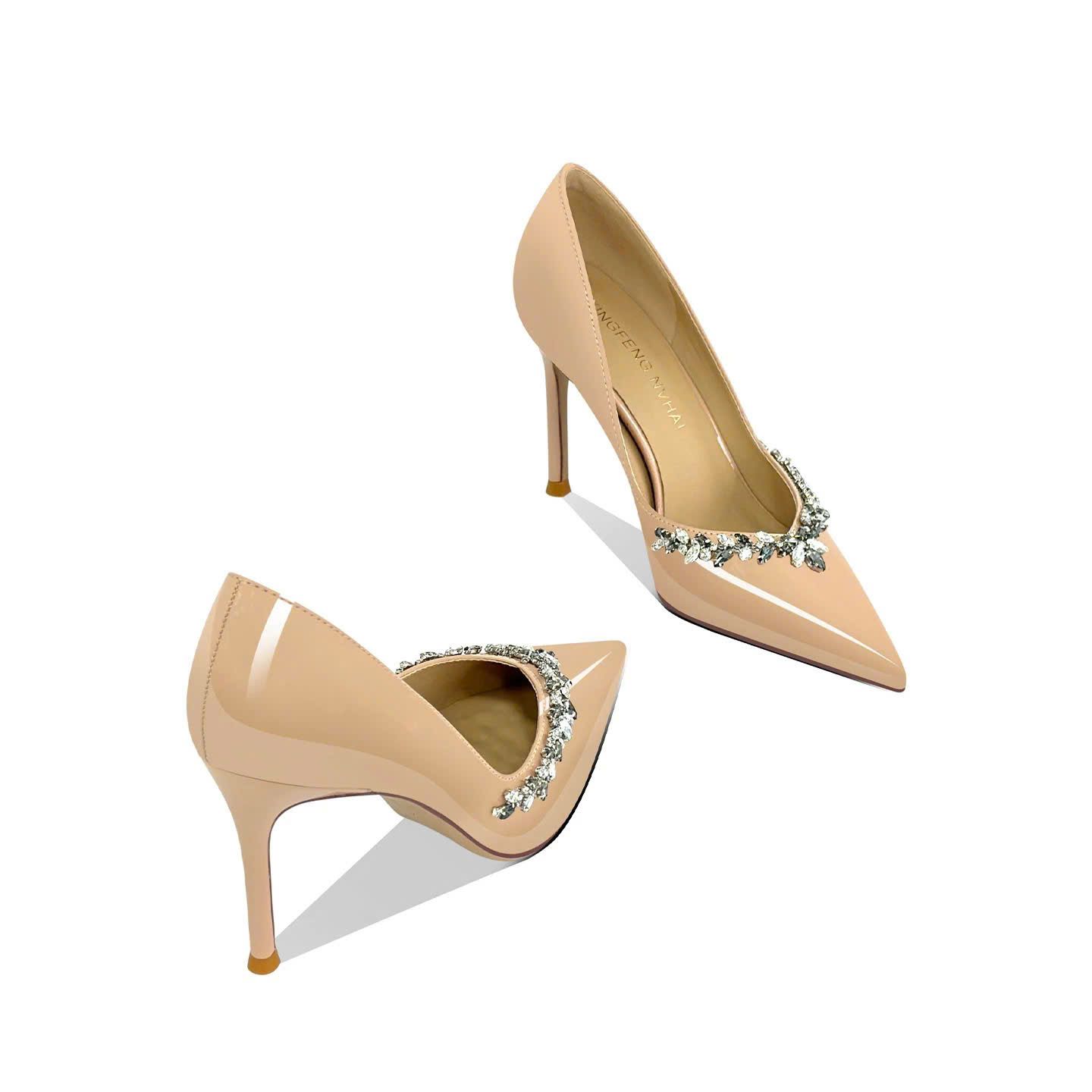 Giày Cao Gót 9 Phân Da Bóng Đính Đá Cao Cấp 3-33