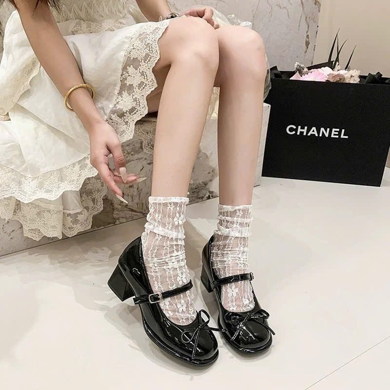 Giày Mary Jane Cao Gót Da Bóng Cao Cấp 8208-26