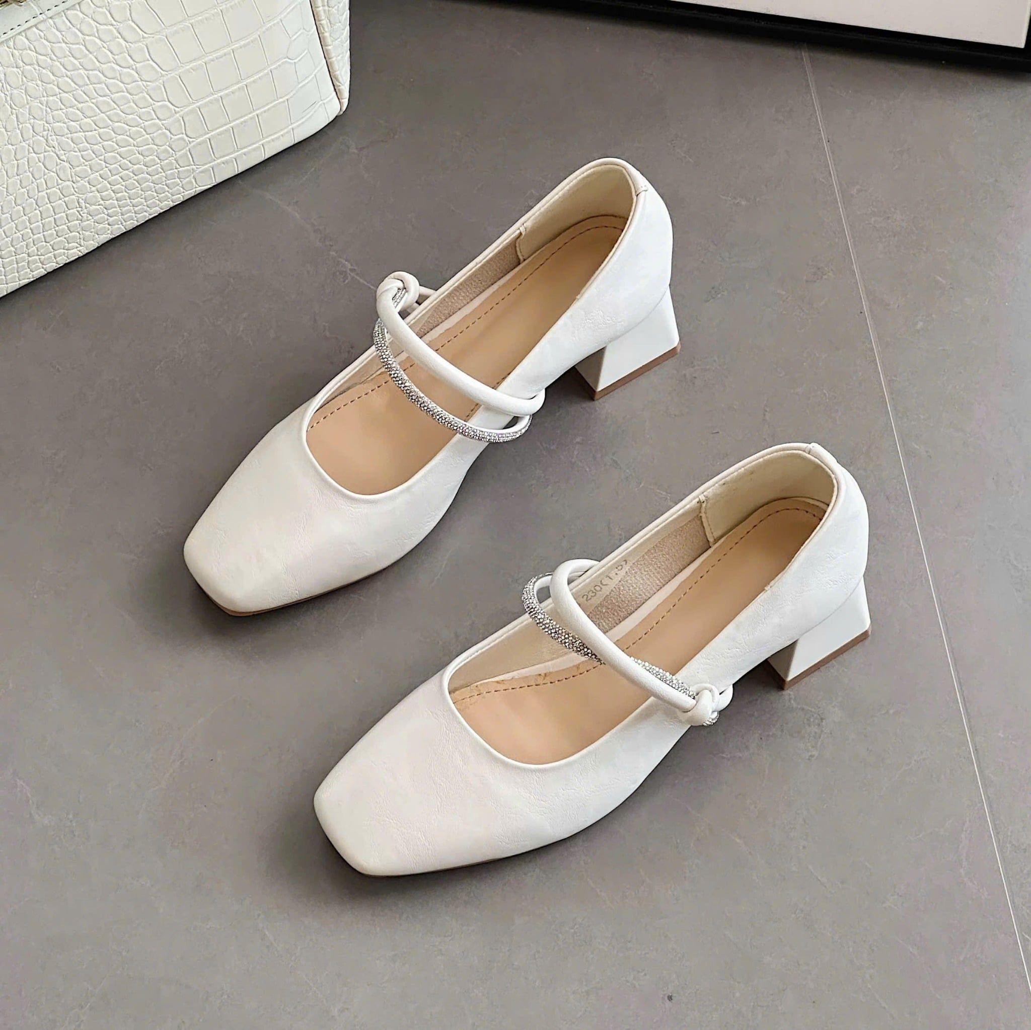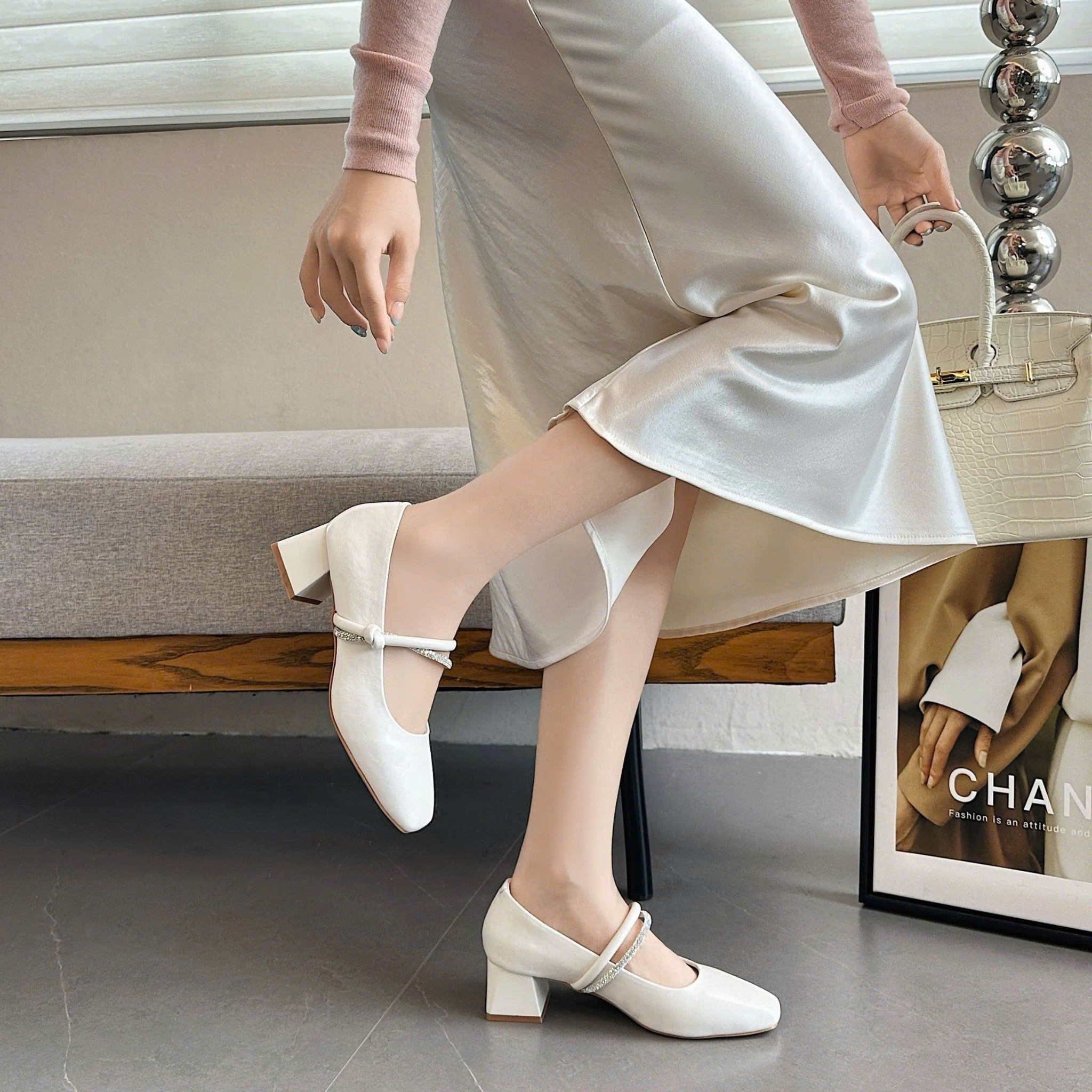 Giày Mary Jane Cao Gót 4 Phân Da Thật 301-25