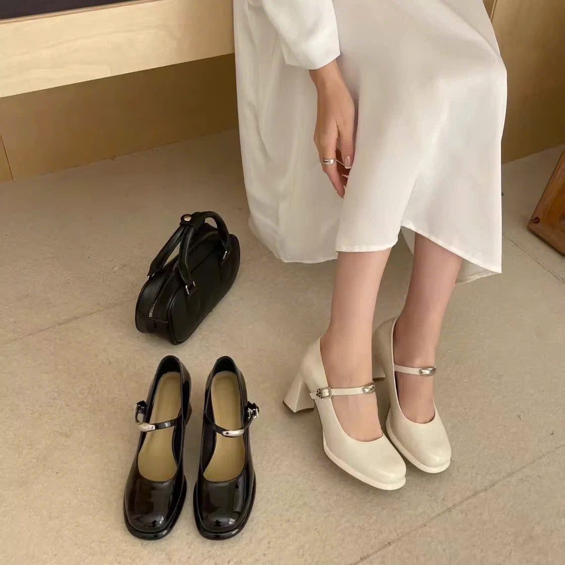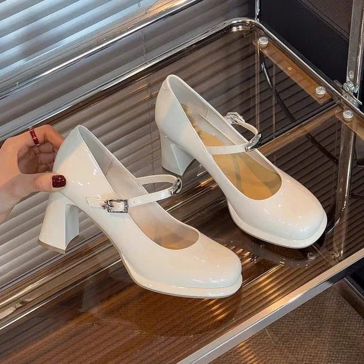 Giày Mary Jane Cao Gót 7 Phân Da Bóng Cao Cấp 8850