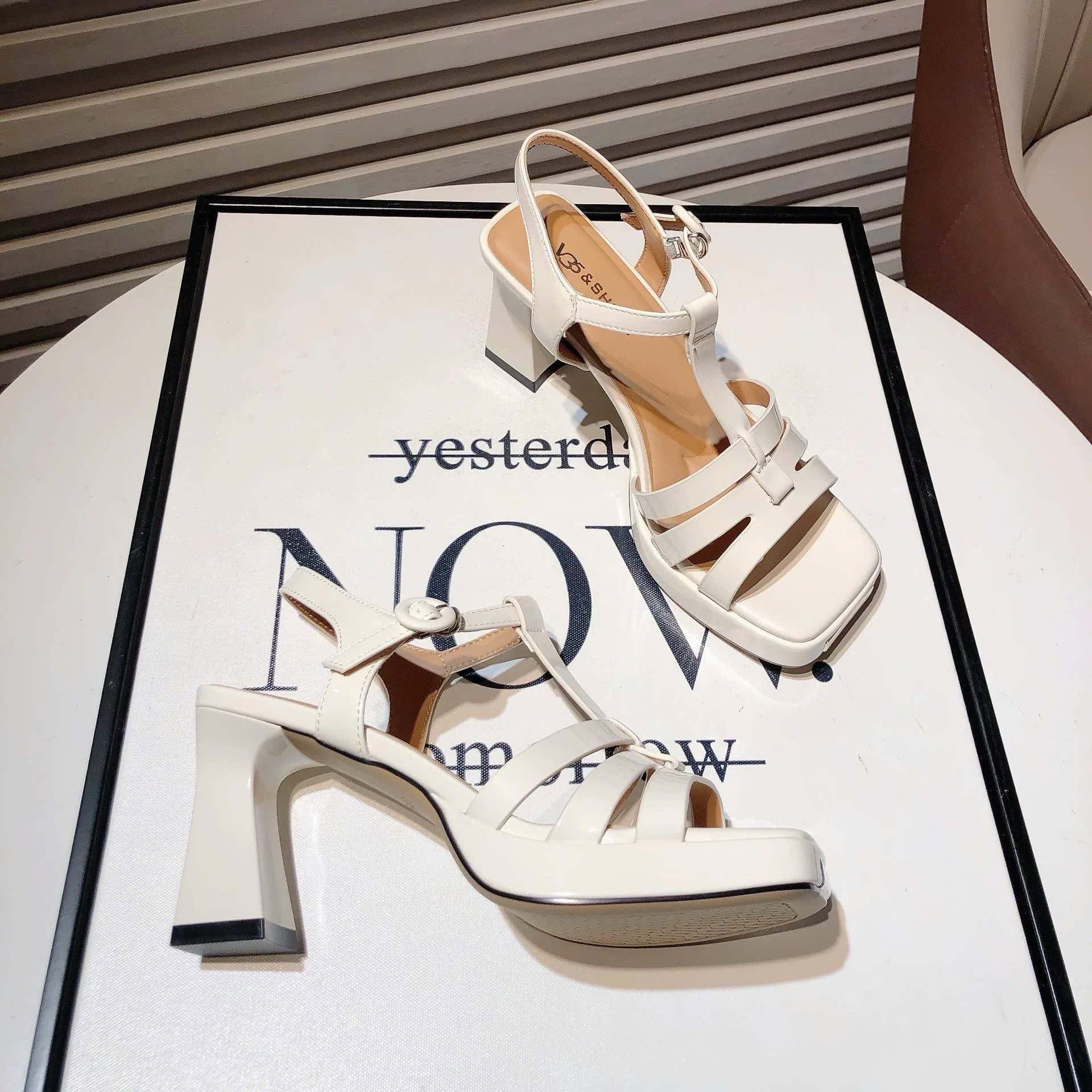 Giày Sandal Cao Gót 7 Phân Đế Đúp 2 Phân Da Bóng Cao Cấp D12887