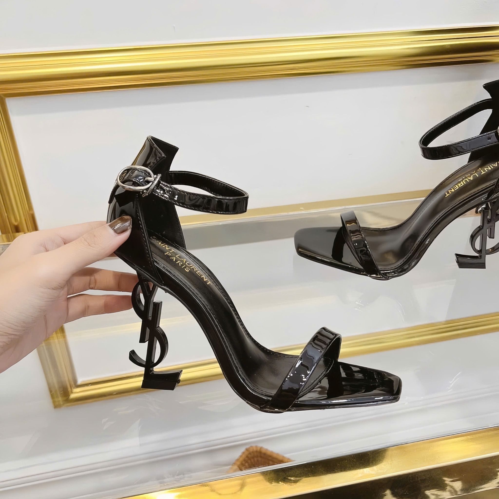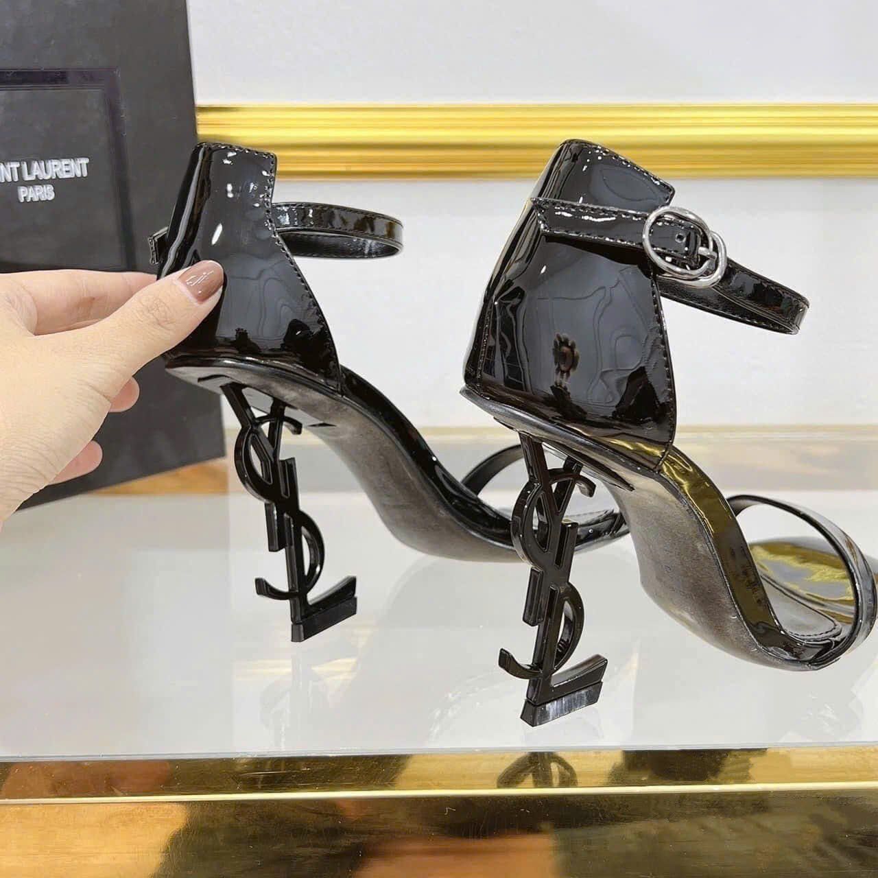 Giày Sandal cao Gót Quai Mảnh Da Bóng Cao Cấp 6689-1