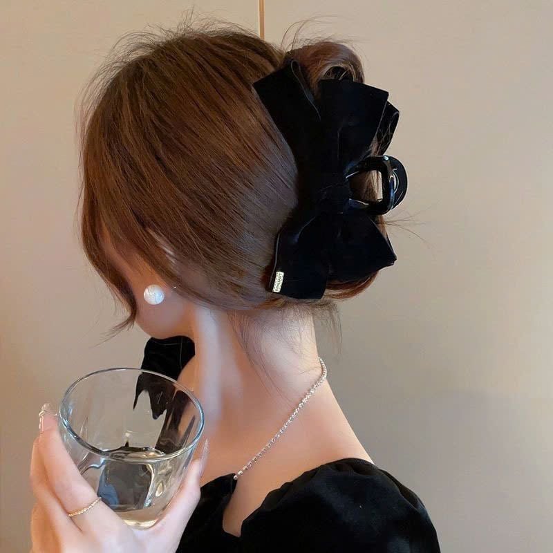 Kẹp tóc bản dài nơ nhung gắn tag vàng - KD-215