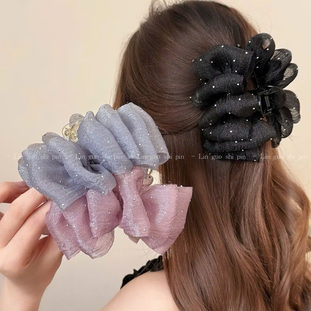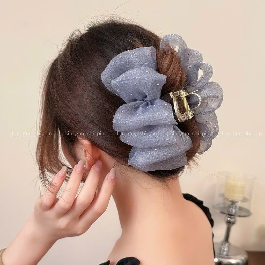 Kẹp Tóc Càng Cua Bảng Lớn Voan Chấm Đá KT11