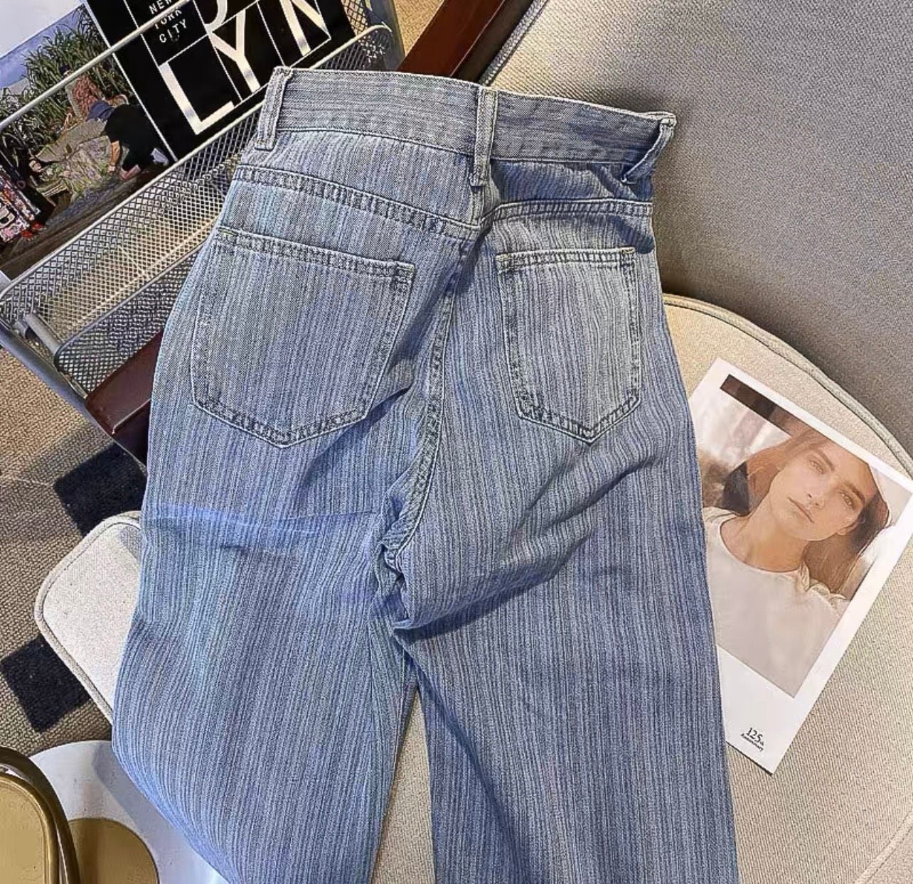 Quần Jeans Nữ Xẻ Gấu Rách Đùi Phối Ngọc Trai Đơn Điệu 8026