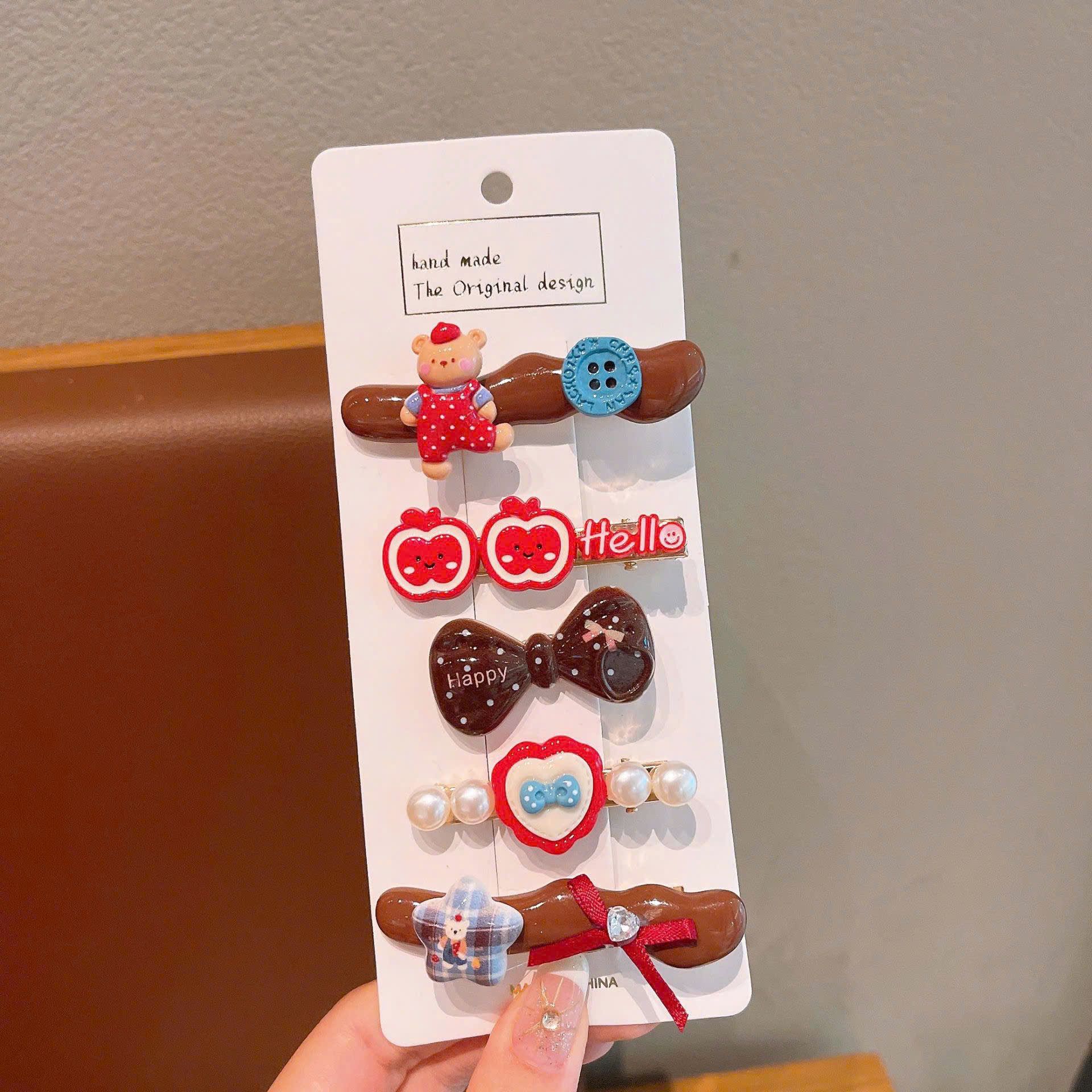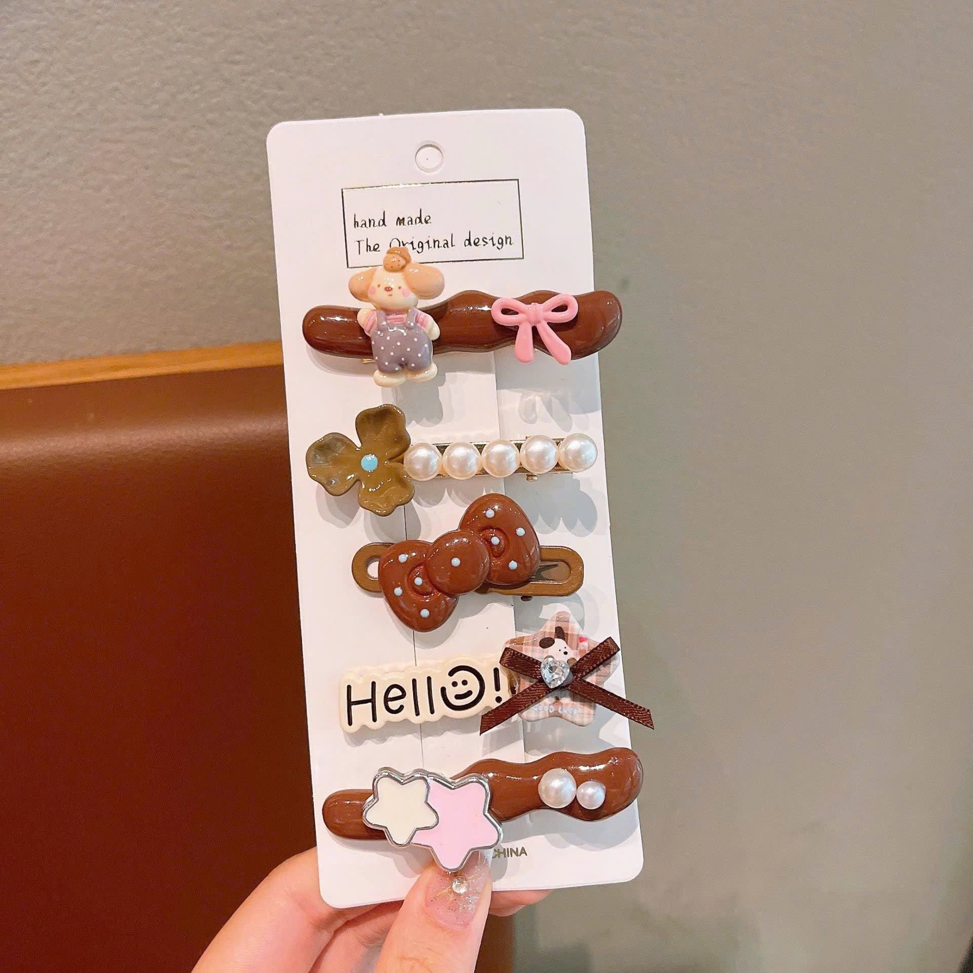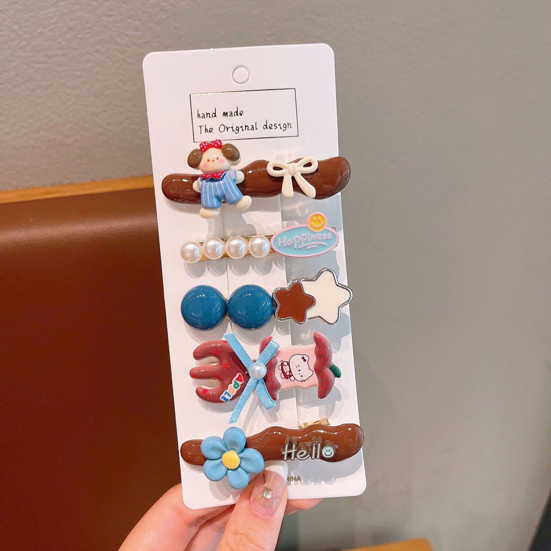 Set 5 kẹp tóc mái gắn charm gấu, thỏ SK-P17