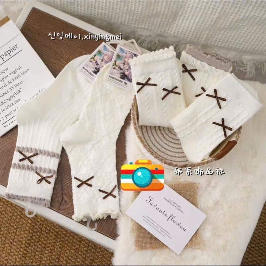 Tất Vớ Nữ Thể Thao Cổ Cao Họa Tiết Nơ T-3